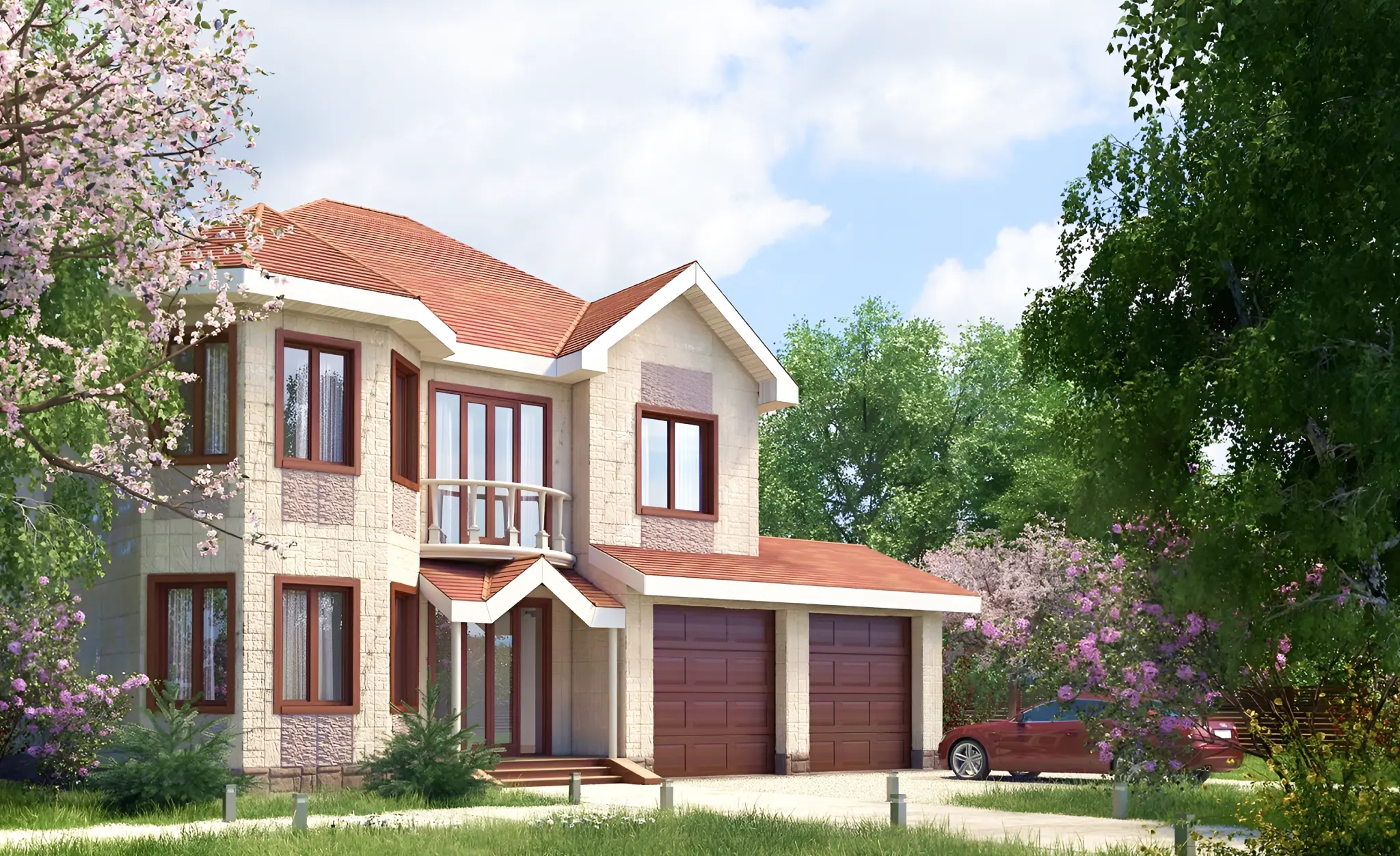 Техноблок уже облицован декоративной плитой «под камень». Дом сразу выглядит стильно и презентабельно — как будто прошёл дорогостоящую отделку. Вам не нужно тратить ни время, ни деньги на фасад.